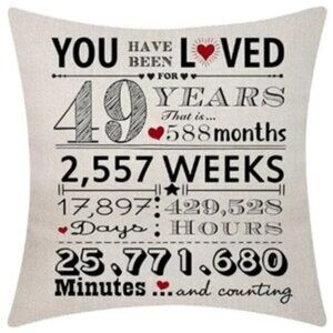 Years Loved Birthday/Anniversary Decoration Throw Pillow Cover - NIP
