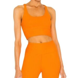 Years Of Ours Ribbed Matching Set Biker Shorts Racerback Sports Bra Orange Small