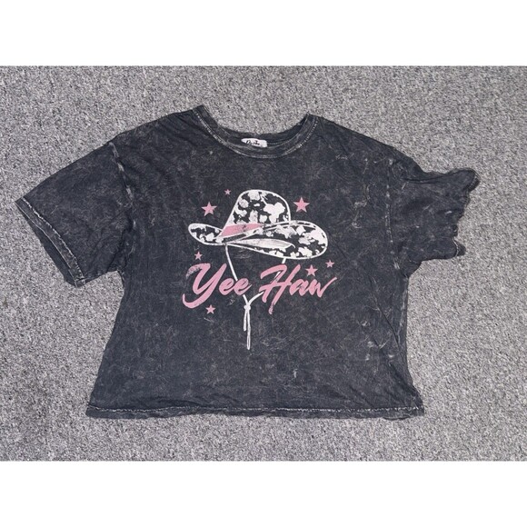 Yee Haw Cowgirl Mineral Black And Pink Long Crop Top T-shirt Medium