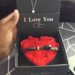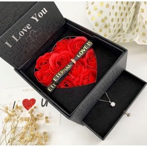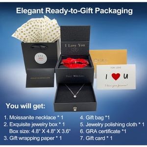 This is a BEAUTIFUL GRA certified 1 carat Moissanite diamond necklace that dazzles and twinkles BEAUTIFULLY. It’s brand new never used, comes inside of a gift box with 9 preserved red roses, an “I Love you” greeting card, tissue paper for wrapping, and the envelope with the diamonds certification enclosed. This set is the PERFECT gift 🎁 MAKE ME AN OFFER 🥳🥳🥳🥳🥳