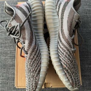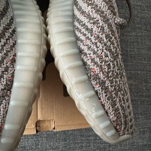 There are flaws in the shoe so please read and look at photos. The soles separated in a couple places. Please see photos. The front separation I was able to gorilla glue but the glue got a little messy. The back I didn’t attempt because of how the front got messy. In the process of moving the box got switched out so this is a different 350 box.