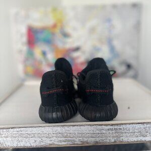 100% authentic pair of Adidas Yeezy Boost 350 V2 “Bred” sneakers — one of the most sought-after Yeezys ever released. Features the classic black Primeknit upper with red “SPLY-350” stitching, pull tab, and full-length Boost cushioning for maximum comfort.