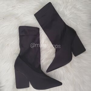 YEEZY Ankle boots. jersey, no appliqués, solid color, narrow toeline, geometric heel, leather lining, leather sole, contains non-textile parts of animal origin. Textile fiber