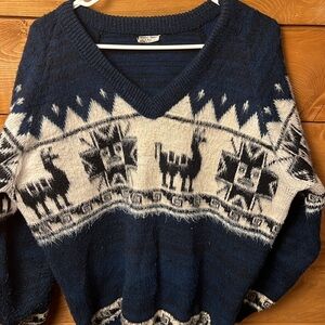 Yejidos-Cortez Alpaca V Neck Long Sleeve Knit Sweater XL Ecuador Wool Vintage