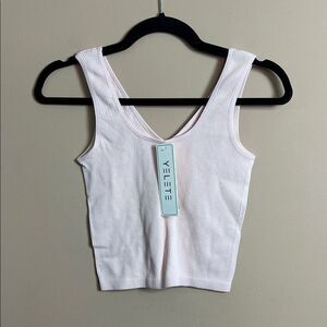Yelete Women’s One Size Vanilla Cream Ribbed Balletcore Cropped Tank Top NWT