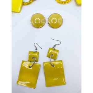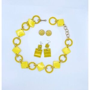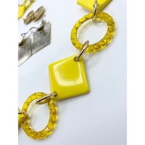 Yellow 70s Chain Belt Square Round Plastic links, Pierced Earrings, Square Round