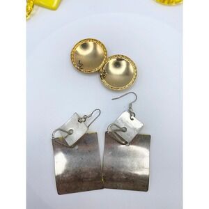 3. Dangling pierced rectangular silver backing, yellow enamal front.