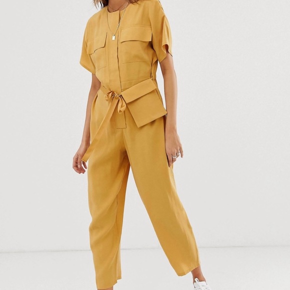 Yellow UK 14 EU 42 US 10 jumpsuit. Has belt. Missing the external pouch pocket. Never worn