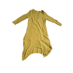Yellow Asymmetrical Hem Long Sleeve Tunic Dress Large