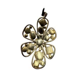 VTG Brown Yellow Austrian Crystal Flower Pendant Satin Necklace 22 Cottagecore