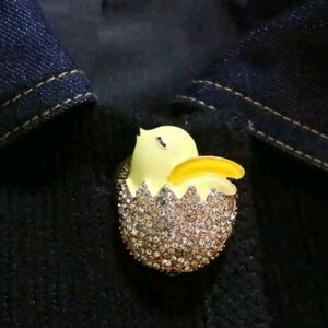 Yellow Baby Chicken Bird In Sparkling Bling Rhinestone Egg Shell Brooch Pin