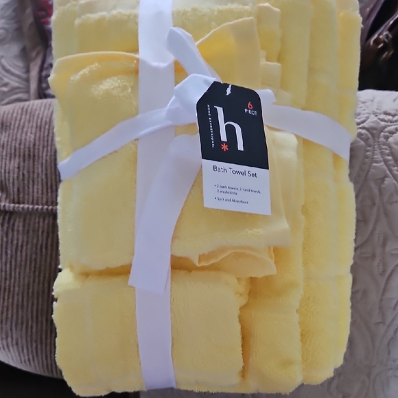 Soft and absorbent yellow bath towel set perfect for any bathroom. Includes multiple pieces for versatile use.