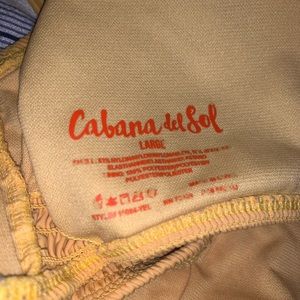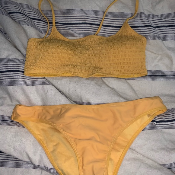 Yellow bathing suit with a top that is a ruffled like texture. Very comfy and soft