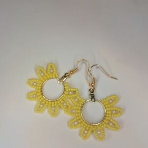 Brighten your look with these charming yellow beaded flower earrings. Perfect for adding a touch of sunshine to any outfit.