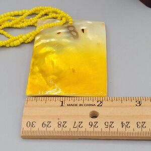 Yellow Beaded Necklace Multi Strand Rectangular Dyed Mother of Pearl Pendant