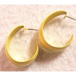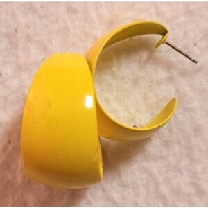 Yellow Beads Silvertone Multi Chain 38" Long Necklace Hoop Enamel Earrings