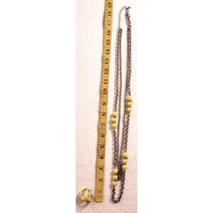 Yellow Beads Silvertone Multi Chain 38" Long Necklace 1" Hoop Enamel Earrings