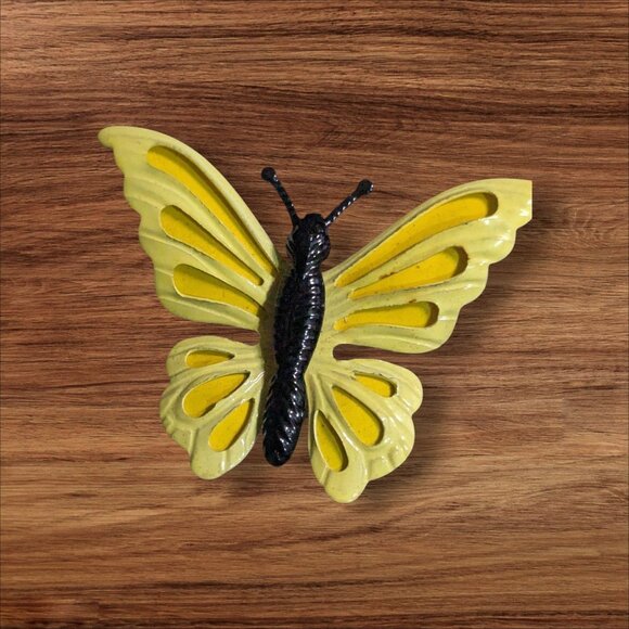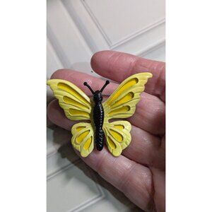 Yellow & Black Butterfly Metal Brooch Pin 2.75" Vintage Cutout Wings