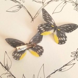 Yellow & Black Silk Butterfly Hair Clips