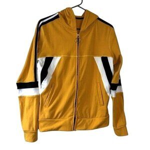 Yellow & Black Tracksuit Set With Hoodie & Striped Design L/XL