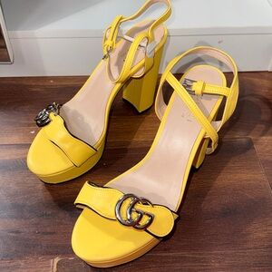 Yellow Block Heel Sandals with Silver Buckle Accent