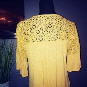 Yellow Blouse Large- Pre- Used in good condition.See photos. This blouse is of soft thin material. It's great for spring or summer weather!
