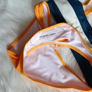 Yellow Blue White Color Block Bandeau Bikini Swim Set Size Medium NWT