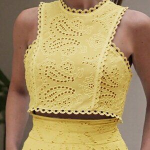 Yellow Boho Women's Floral Hollow Out Full Embroidery Crop Top
