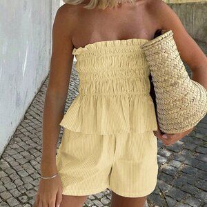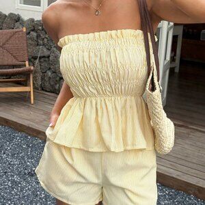 Yellow Boho Womens Striped tube Top And Shorts Set