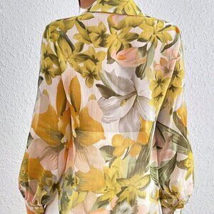 Yellow Boho Women's Turn-Down Collar Button down floral blouse