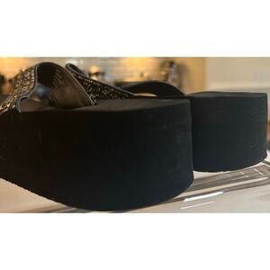 Step into summer with these stylish Yellow Box flip flops! These feature a comfortable leather beaded upper with eye-catching black sparkly accents. Perfect for adding a touch of glamour to your casual outfits! These are in excellent condition and ready for a new home. Get ready to sparkle and shine! These are in women's size 9.5. Don't miss out, add these beauties to your collection today!