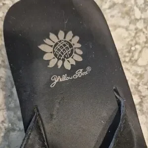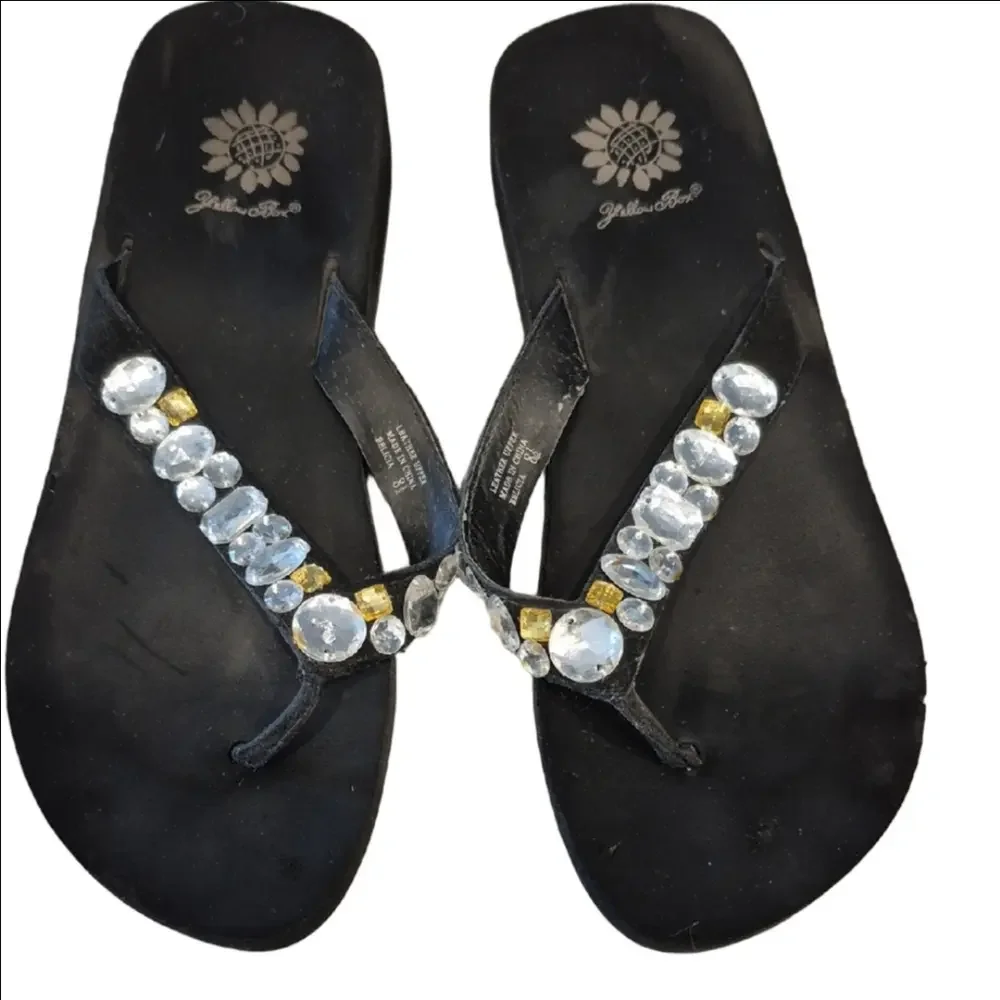 Yellow Box Belicia Black Sandals with Rhinestone and Gold Accents