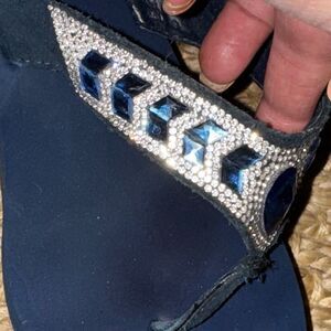 #yellowbox #blingflipflops #beachstyle #wedgeflipflops #summerfashion #resortwear #sparklysandals #navysandals #platformsandals #size95