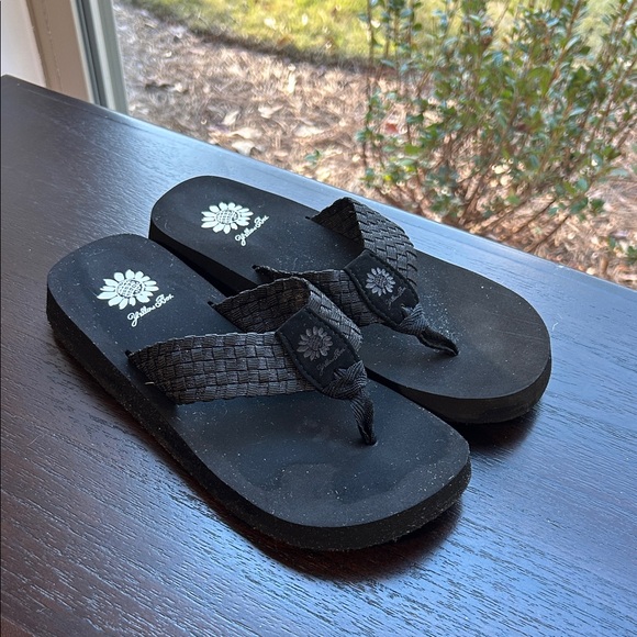 Yellow Box Black Flip Flops Size 8