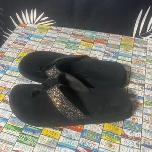 Yellow Box Black Glitter Thong Sandals Women’s Size 10