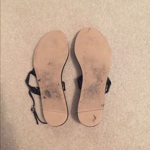 Yellow Box Black Rhinestone Thong Sandals. Black patent. So cute and comfy! Adjustable strap around ankle. Size 7.