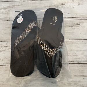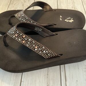 Yellow Box Black Sandals with Rhinestone Accents