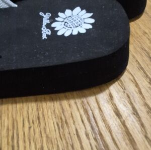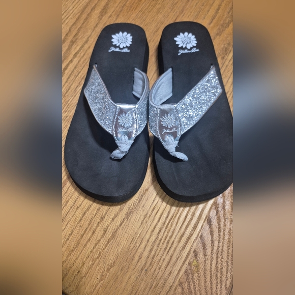 Yellow Box Black Sandals with Silver Glitter Straps Womens Size 9