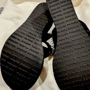 Elegant black sandals with sparkling silver embellishments. Perfect for any occasion.