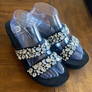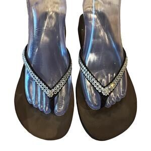 Yellow Box Black and Brown Croc-Texture Platform Flip Flops