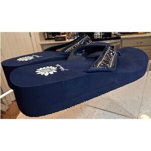 Elevate your style with these stunning Yellow Box sandals! These sandals are new with tags and feature a beautiful dark blue jeweled leather upper.