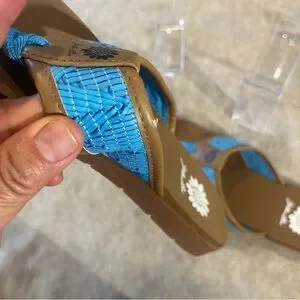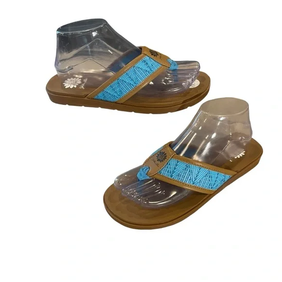 Yellow Box Blue Tan Woven Flip Flop Sandals Women’s Size 7.5
