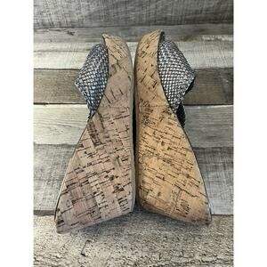 Yellow Box Braided Metallic Rhinestone Buckle Cork Wedge Sandals Size 10
