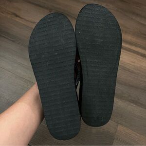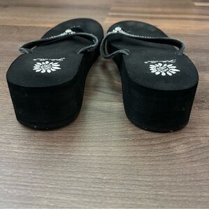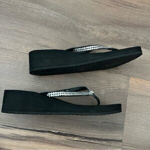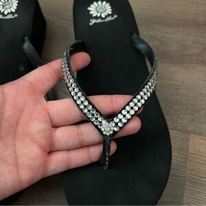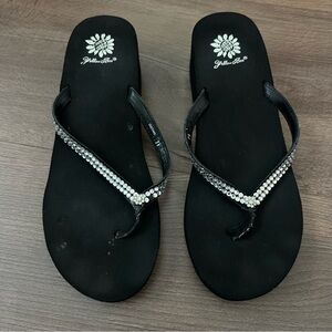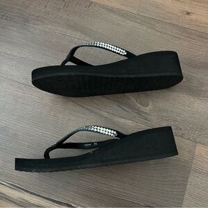 Yellow Box Custard Black Wedge Flip Flops - Embellished Rhinestone Straps Sz 7.5