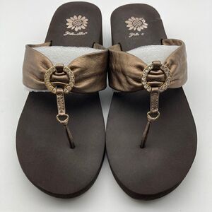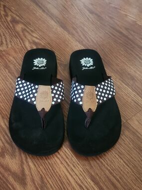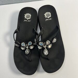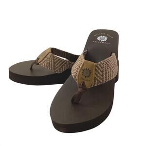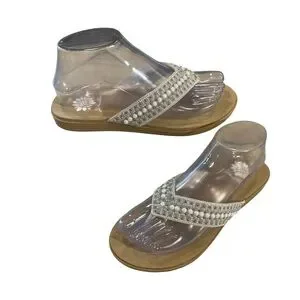 Yellow Box Debra Flip Flop Sandals Faux Pearl Leather Women’s Size 6.5