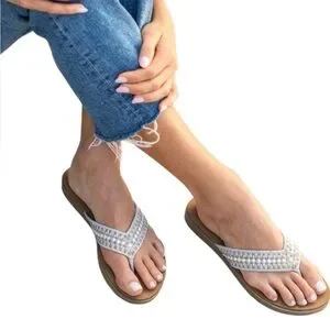 Yellow Box Debra Flip Flop Sandals Faux Pearl Embellishment with Leather Strap