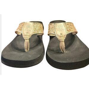 Yellow Box Feliks Flip Flop Sz. 8 Gold Glitter Straps Resort Vacation Beach
