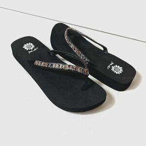 Yellow Box Flip Flops Black Sequined Thong Leather Sandals Women's 10 Zemily New