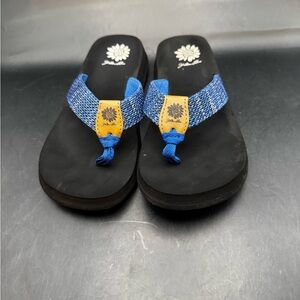Yellow Box Flip Flops Fayne Women's Blue & Silver Metallic Comfort Sandals SZ 7