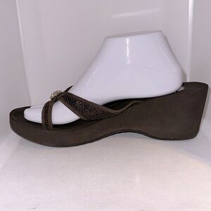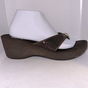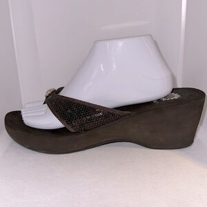 Yellow Box Genesis Brown Sequin Wedges with Rhinestone Accent Size 11 - EUC